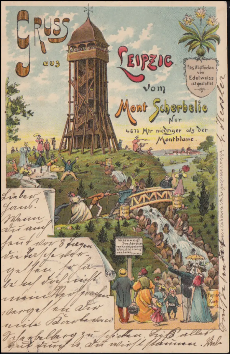 Humor-AK Gruss de Leipzig, du Mont Scherbelio, LEIPZIG-GOHLIS 14.1.1902
