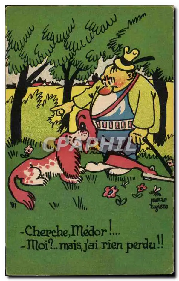 Humour - Illustration - Cherche Medor - Chasseur - hunter - dog - chien - Cartes postales