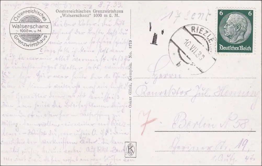 III. Reich:AK Autrichien Markswirtschafthaus 1933: KLEINWALSERTAL - Riezle
