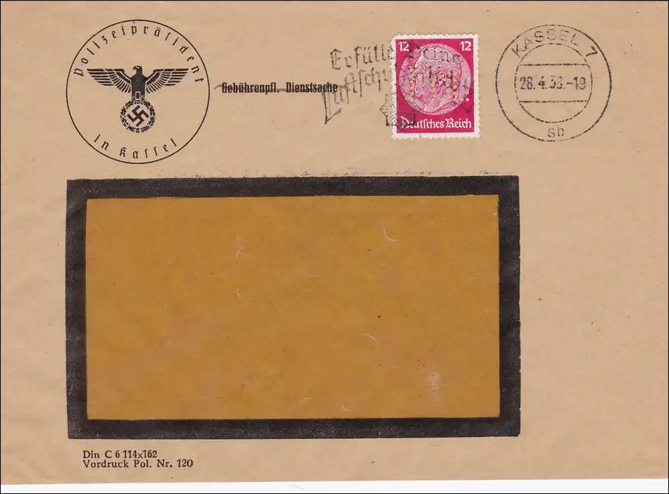 III. Reich: Kassel, président de police. Marque POL, timbre publicitaire Protection aérienne 1938