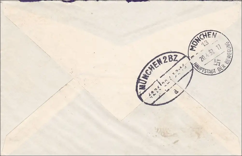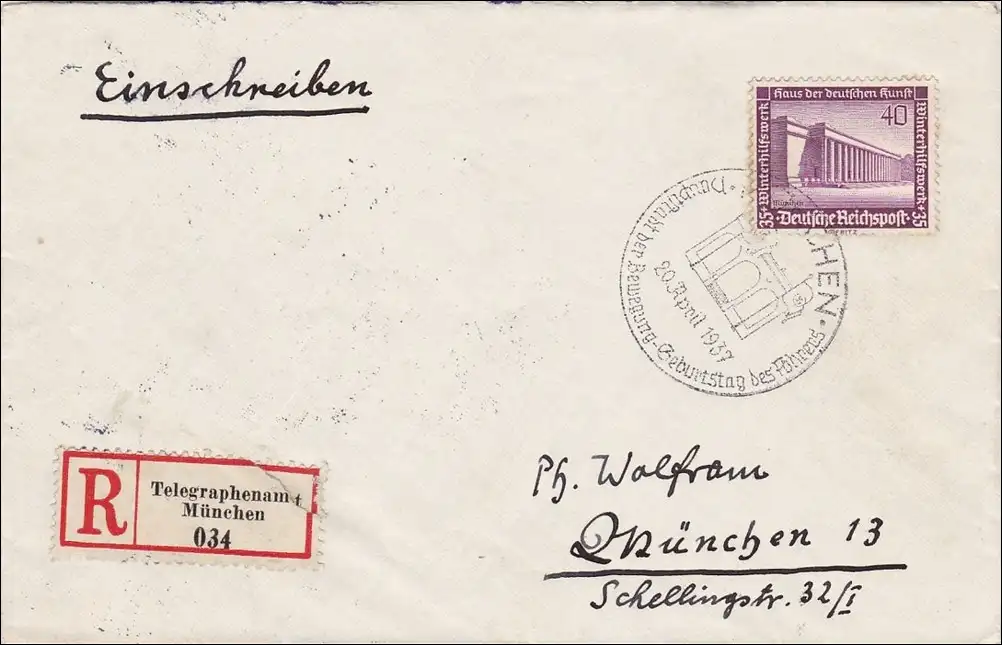 III. Reich:R-Zettel Telegraphenamt Munich 1937, Tampon spécial Führer Anniversaire