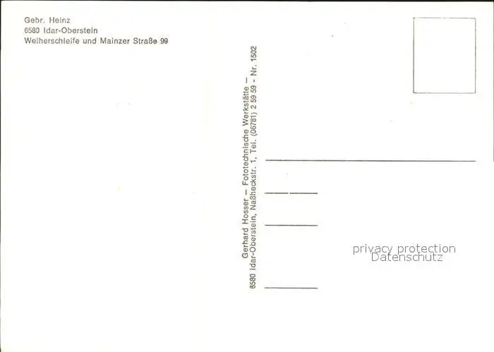 Idar-Oberstein Weiherschleife Gebrueder Heinz Schmucksteinschleifer Idar-Oberstein postalisch nicht gelaufen nach 1965 Erhaltung siehe scans [LiesaD40] LiesID40