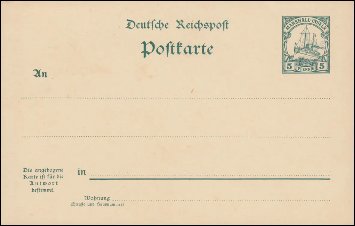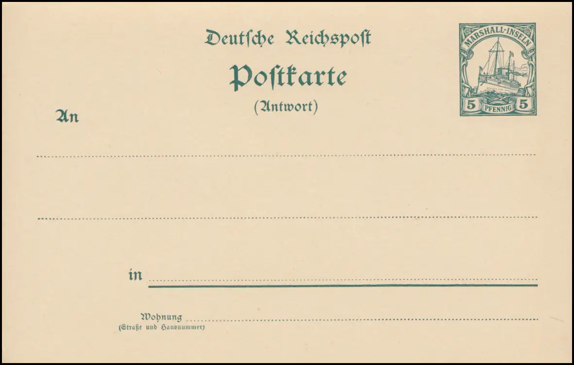 Îles Marshall Carte postale P 13 Dessin colonial 5/5 Pf, ** frais de port