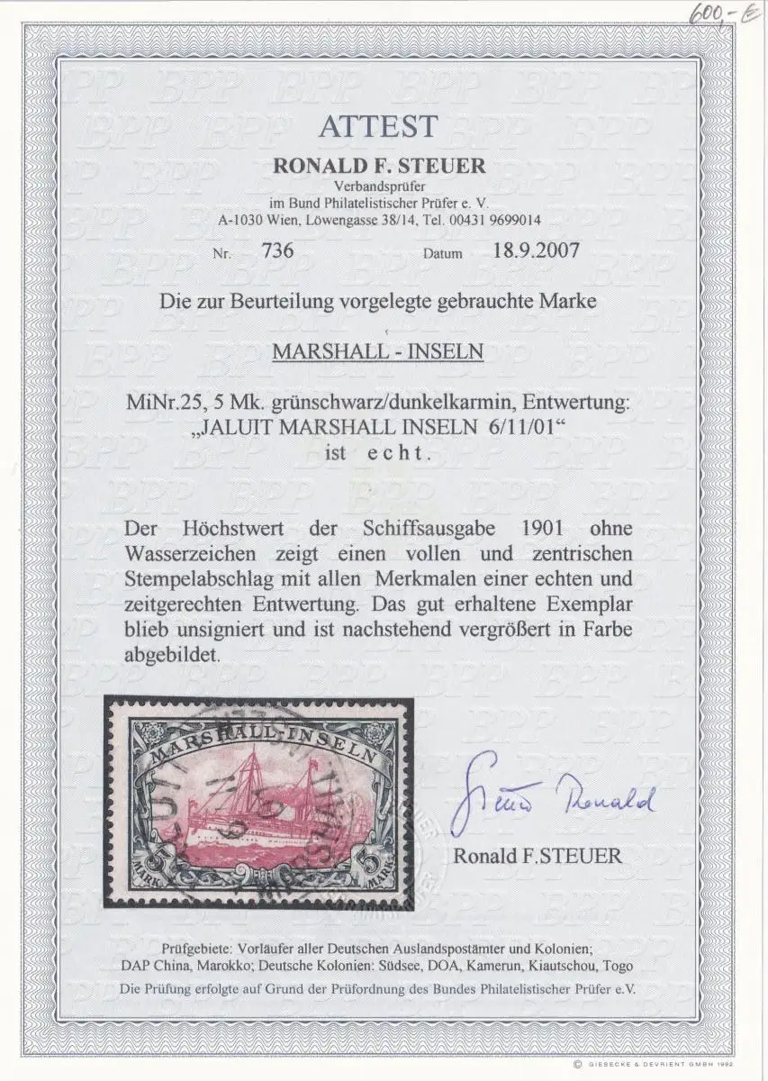 Îles Marshall: MiNr. 25 Tampon Jaluit Marshall Îles avec BPP Attest