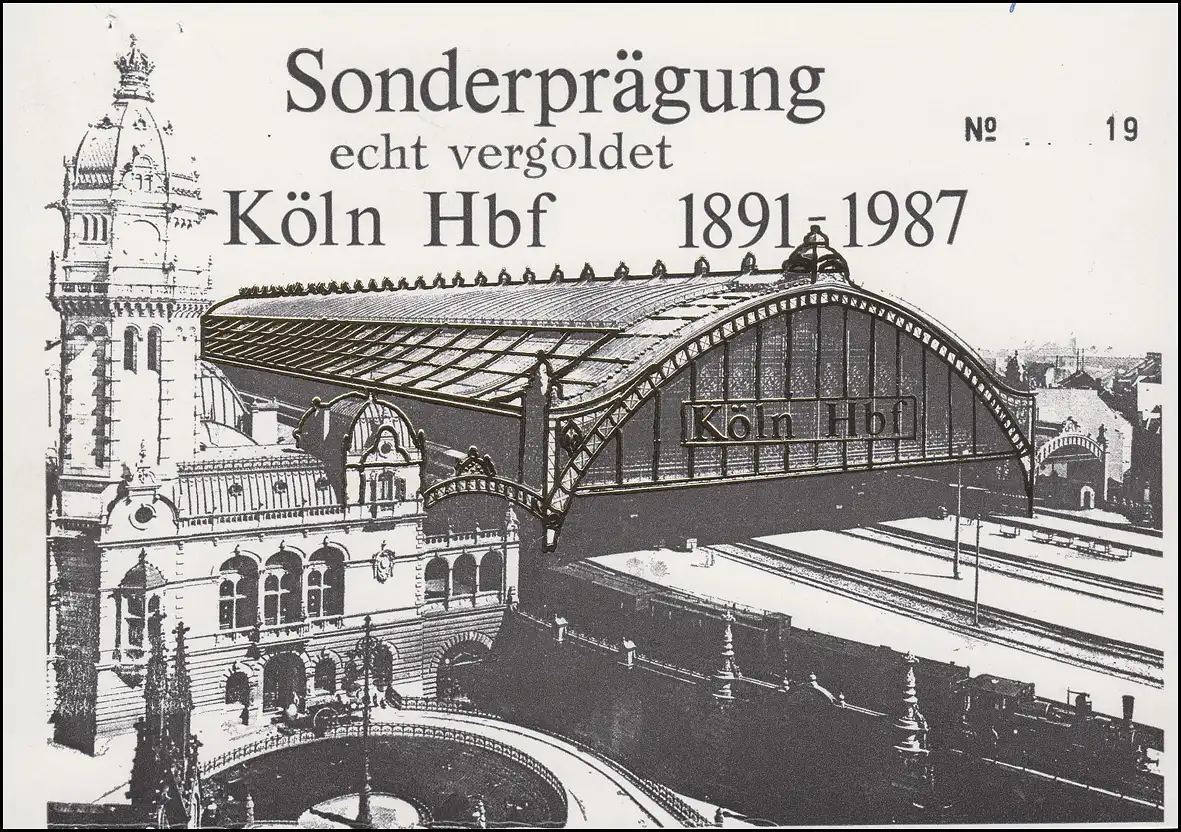 Impression spéciale Carte de vue dorée: Köln gare centrale 1891-1987