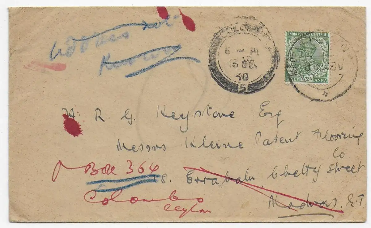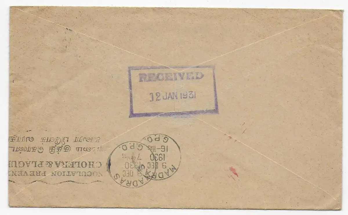 Inde-Ceylan, 1931 après Madras; choléra timbre publicitaire