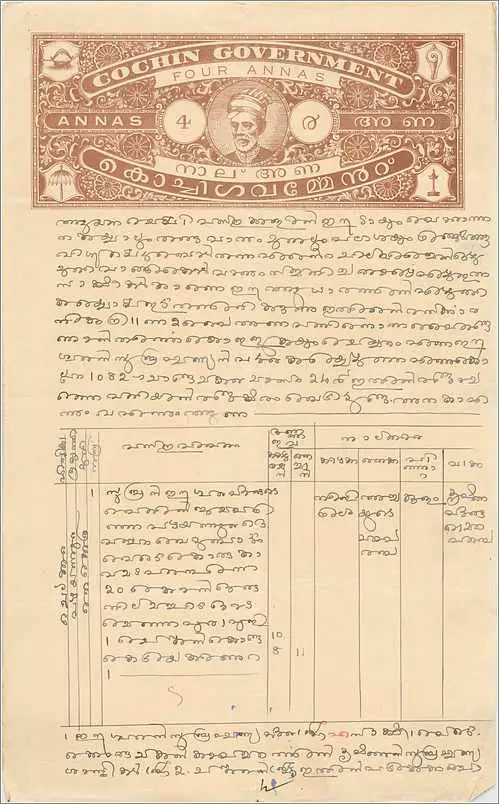 Inde India Fiscal Revenue Court Fee Princely State Cochin