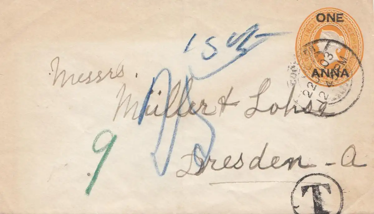 sehr schöner und seltener Bahnpostbeleg aus Britisch Indien F4 OUT / SET N°1 mit Mischfrankatur King Edward / King George 1912 nach nach Frankfurt am Main versandt. Ich bin sehr zufrieden, vielen Dank!