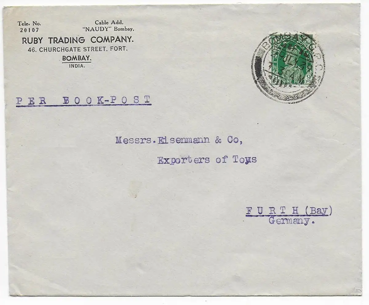 sehr schöner und seltener Bahnpostbeleg aus Britisch Indien F4 OUT / SET N°1 mit Mischfrankatur King Edward / King George 1912 nach nach Frankfurt am Main versandt. Ich bin sehr zufrieden, vielen Dank!