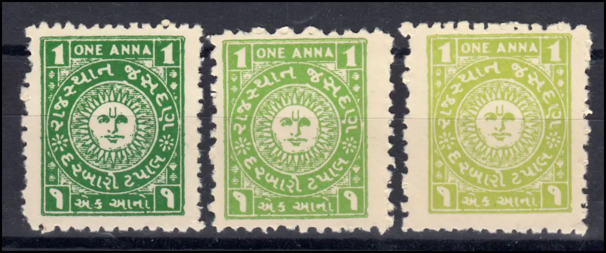 Inde Jasdan n° 1 en trois couleurs, set comme dépensé sans caoutchouc