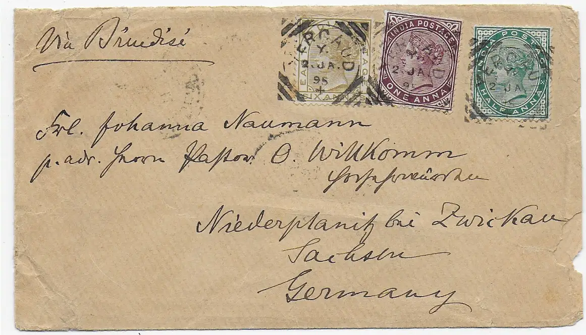 sehr schöner und seltener Bahnpostbeleg aus Britisch Indien F4 OUT / SET N°1 mit Mischfrankatur King Edward / King George 1912 nach nach Frankfurt am Main versandt. Ich bin sehr zufrieden, vielen Dank!
