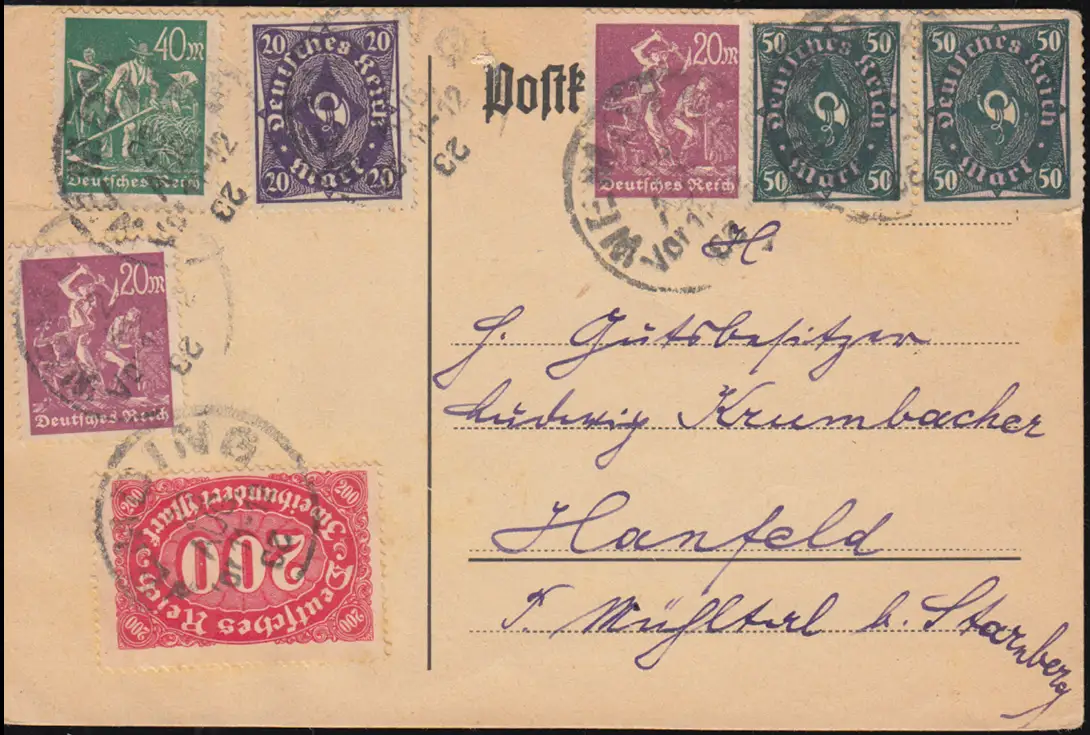 Infla-Frankatur Posthorn ouvrier chiffres sur PK WEMDING 28.8.23 [23 tête)
