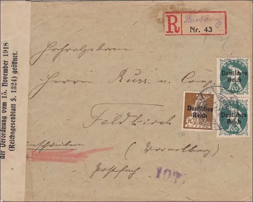 Inflation: Lettre de Heinburg écrite selon Feldkirch-GEFFNET 1921, examinée