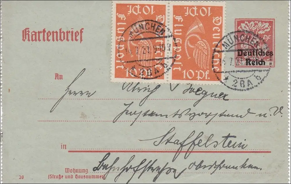 Inflation: tout -Carte-lettre de Munich à Staffelstein 14.7.1921