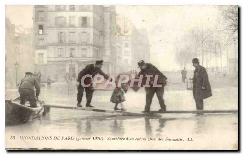 Inondations de Paris Cartes postales Janvier 1910 Sauvetage d&#39un enfant Quai des Tournelles