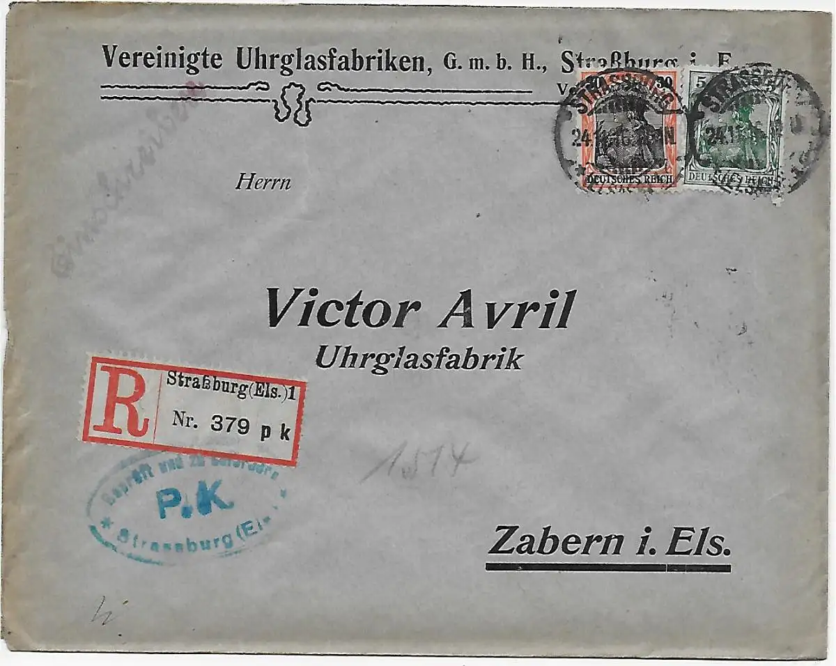 Inscrivez-vous Strasbourg Alsace Horlogerie à Zabern, 1916, censure