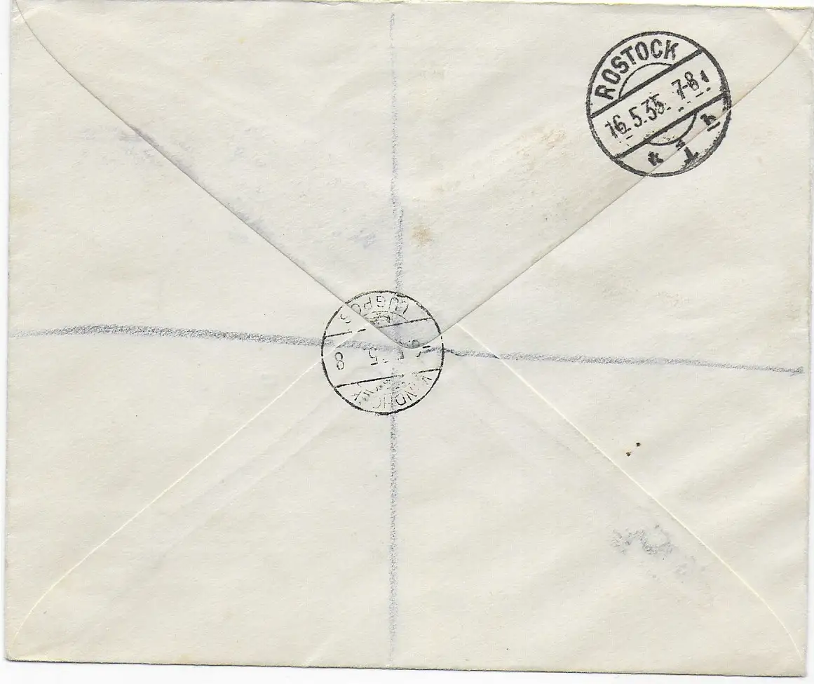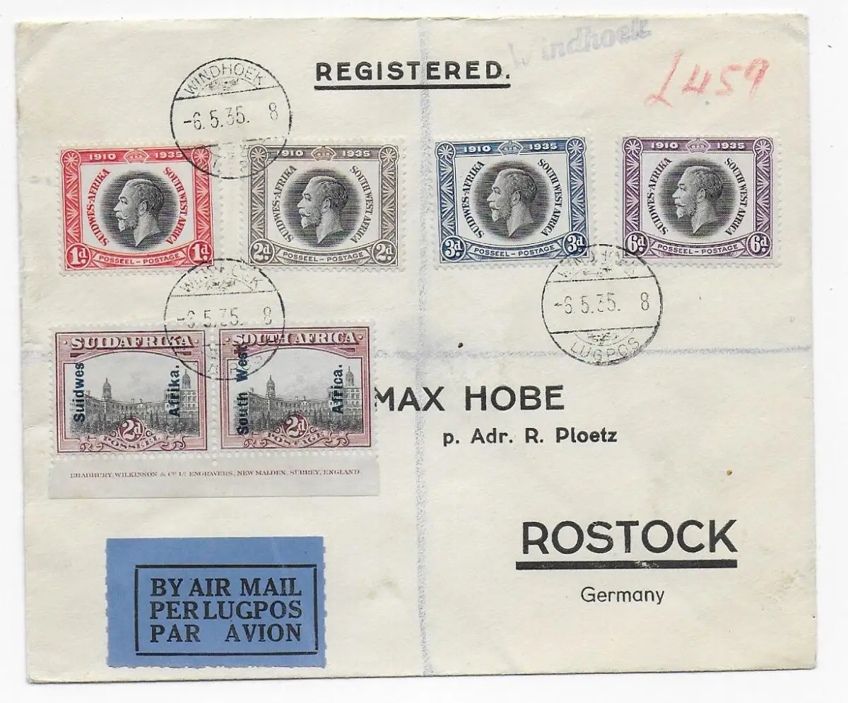 Inscrivez-vous à l'adresse suivante: air mail Windhoek d'après Rostock, 1935