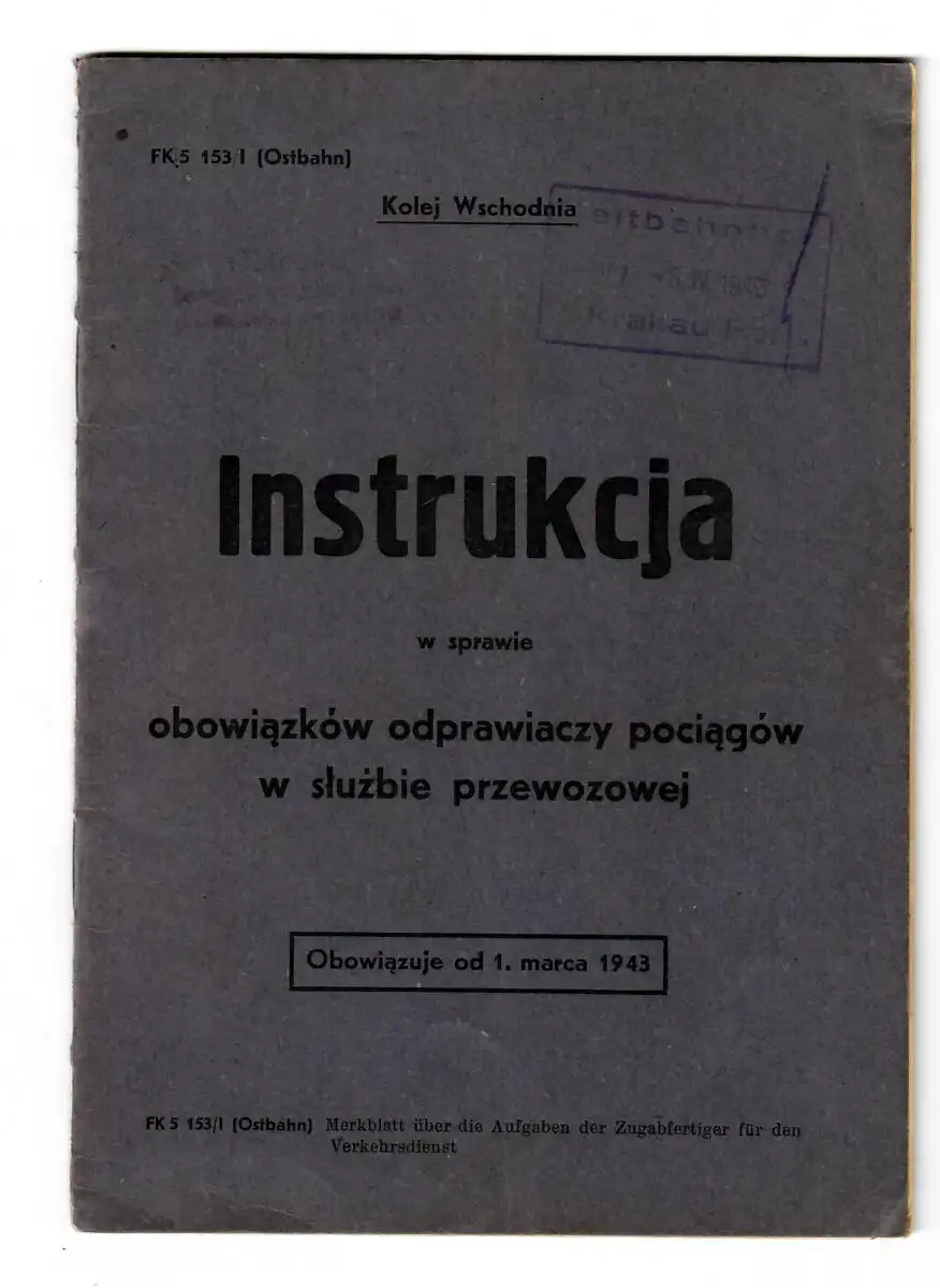 Instrukcia w sprawie oboviazkov odprawiaczy pociagow w smuzbie przevozowej 1943