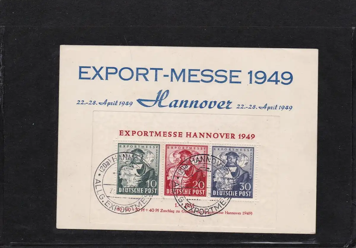 Instrumentation alliée 1949: bloc n° 1a sur carte blanche avec cachet du premier jour du salon