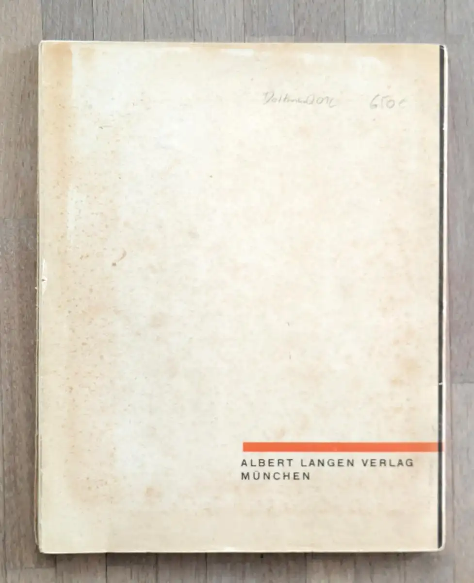 Original Broschur mit illustrierten Original Umschlag von Farkás Molnar. Typographie von Laszlo Moholy-Nagy.