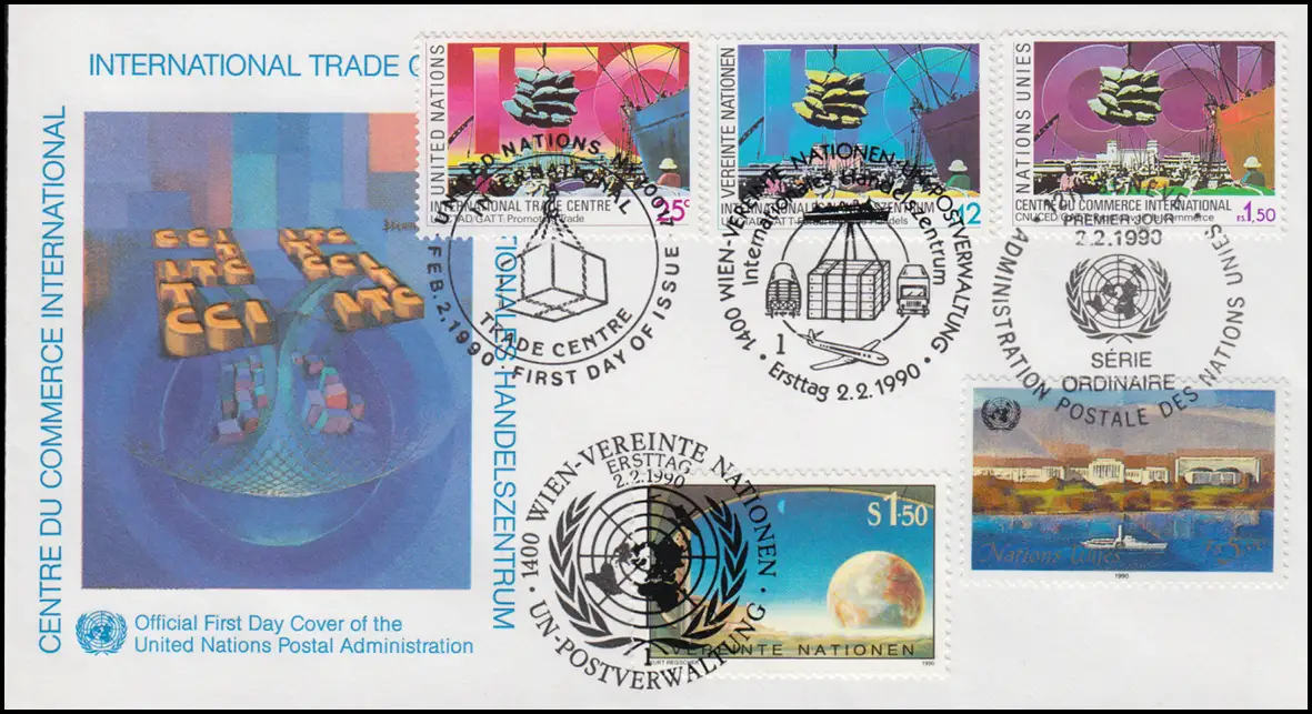 Centre international du commerce - FDC des bijoux des 3 dépenses de l'ONU 2.2.1990
