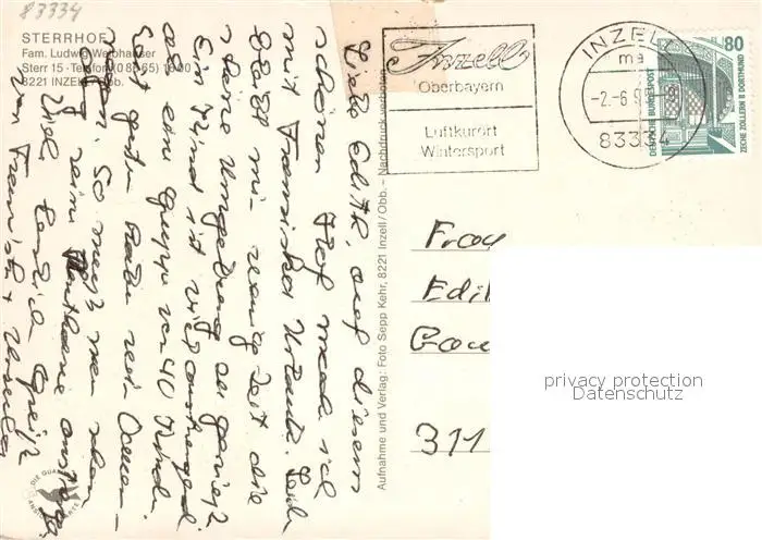 Inzell Sterrhof Inzell postalisch gelaufen nach 1965 Erhaltung siehe scans [WerneD78] WernPID7