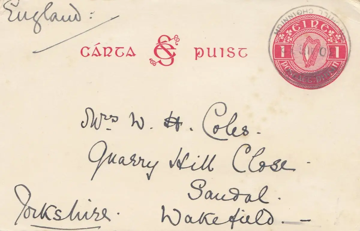 Irlande: 1932: vers le Yorkshire - Angleterre