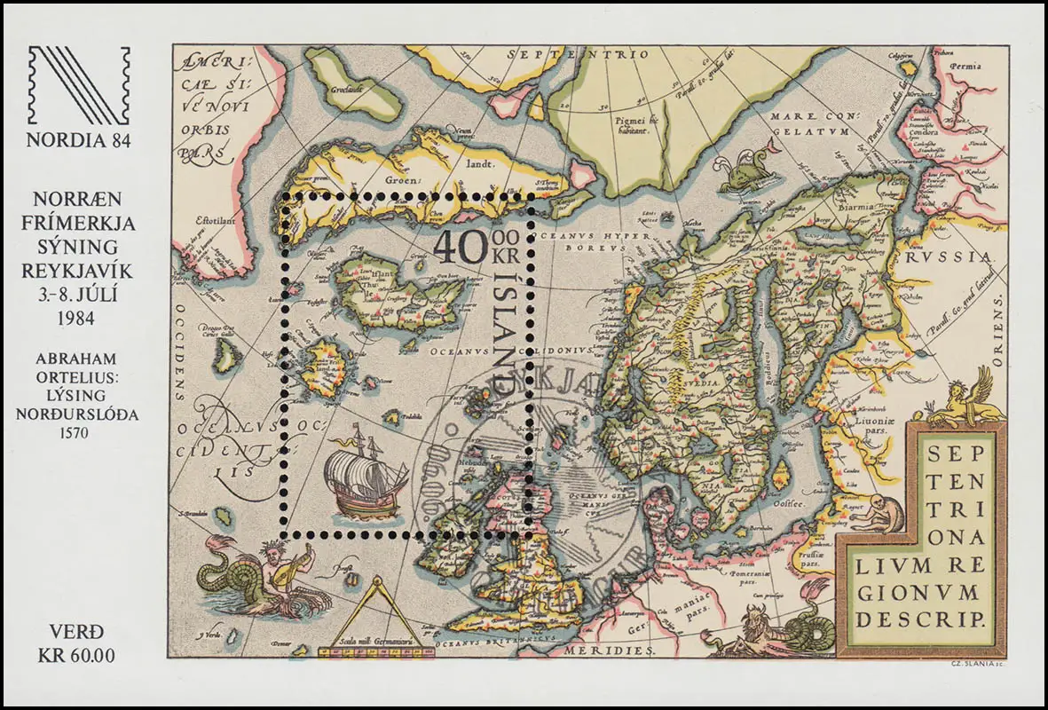 Islande Bloc 6 Exposition NORDIA'84: Carte des pays du Nord, ESSt 6.6.1984
