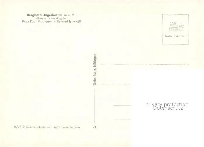 Isny_Allgaeu Berghotel Jaeger Isny Allgaeu postalisch nicht gelaufen nach 1965 Erhaltung siehe scans [WerneD78] WernPID7