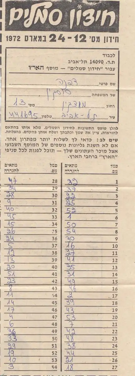 Israël: 1972: Tel Aviv letter