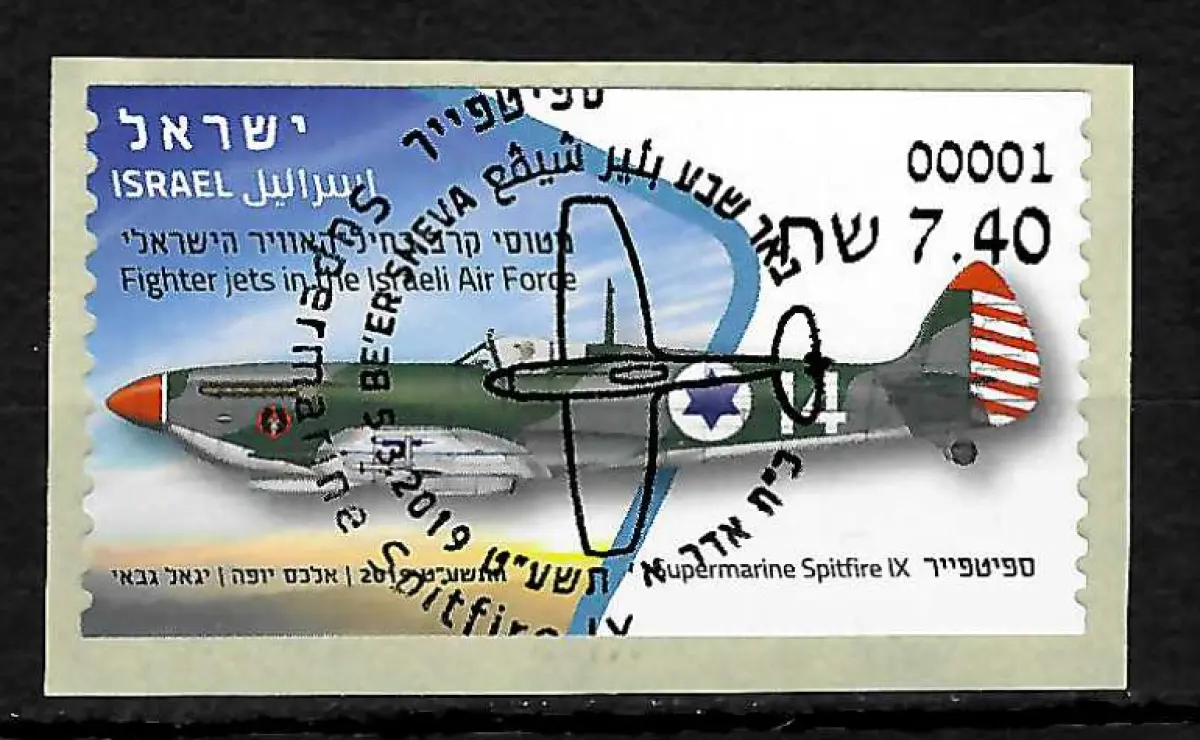 Israel 2019: Kampfflugzeug Supermarine Spitfire IX, gestempelt