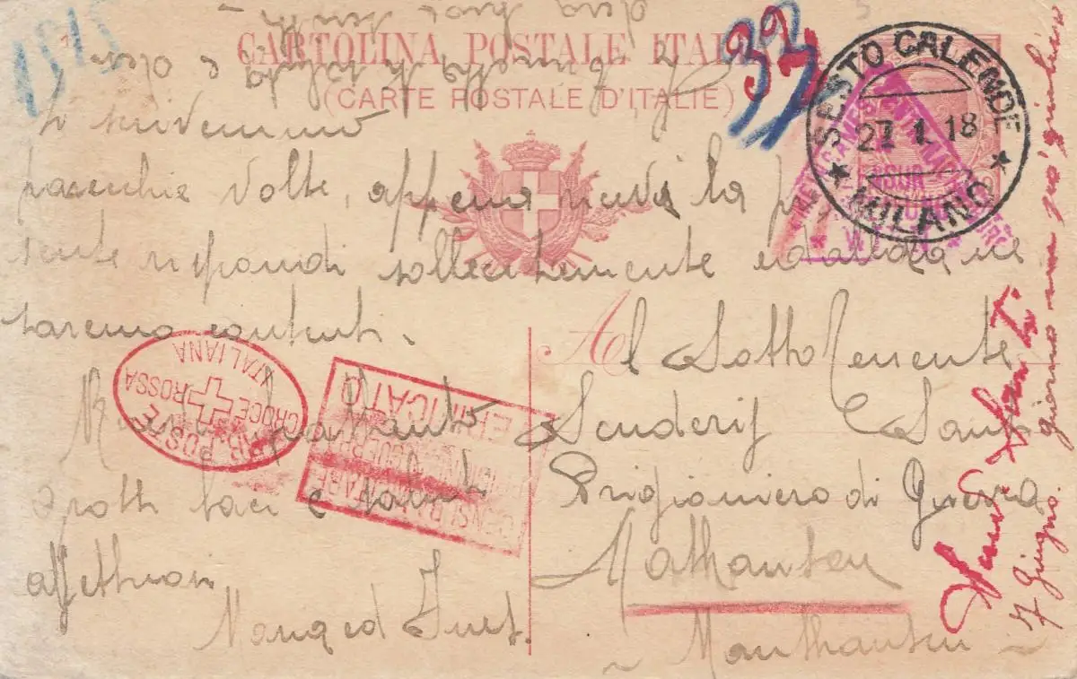 Italie: 1918 Sesto Calende vers l'Autriche: Croix-Rouge