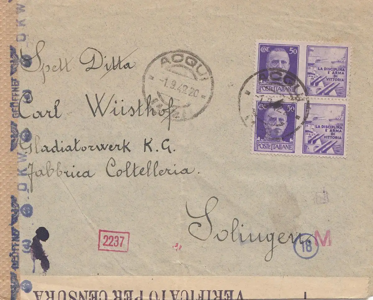 Italie: 1942: Acqui apr. Solingen - Verificato/OKW Censure