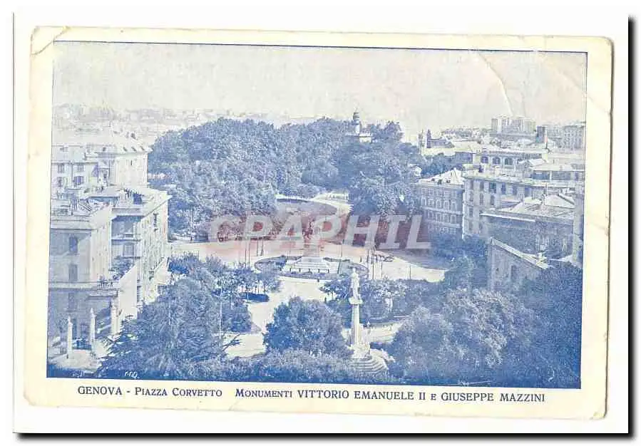Italie Italia Cartes postales Genova Piazza Corvetto Monumenti Vittorio Emanuelle 11 et Giuseppe Mazzini