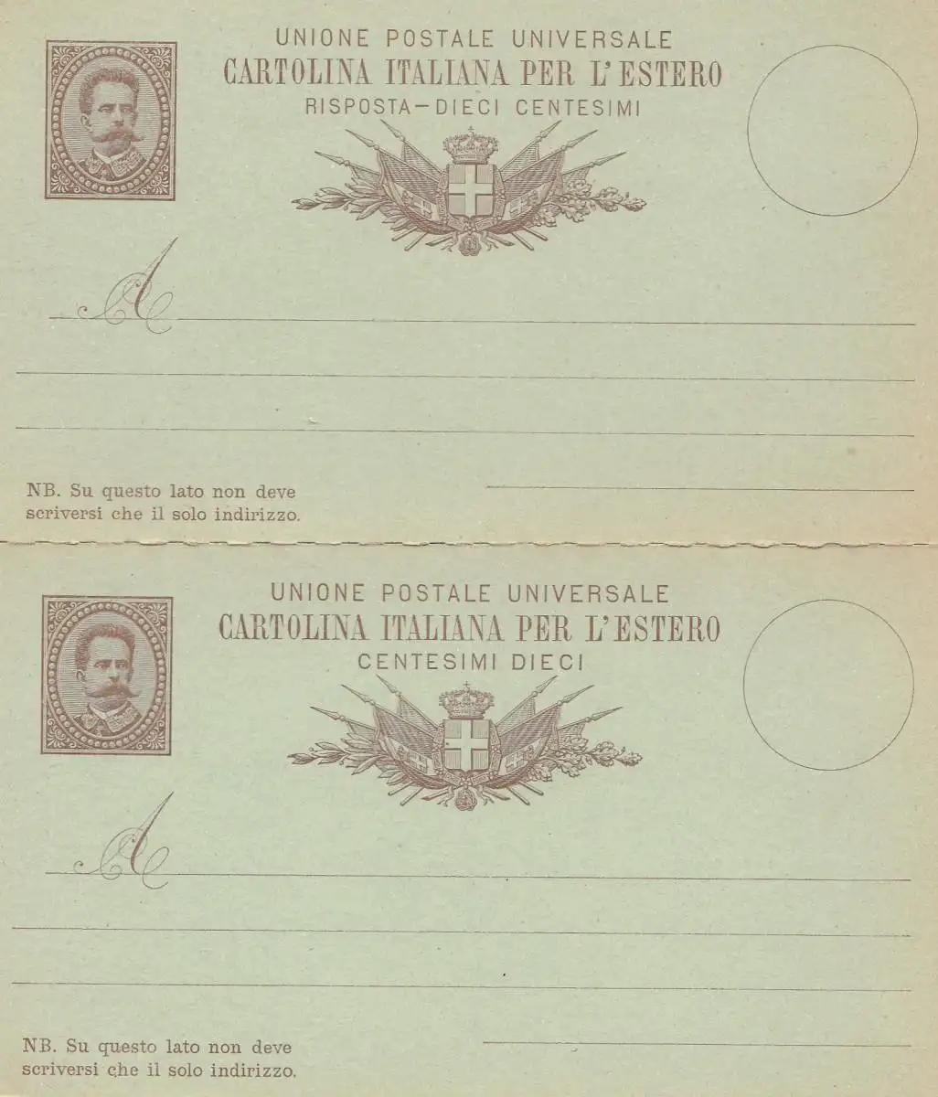 Italie: P11 - Cartolina Italiana per L' Estero: Double carte