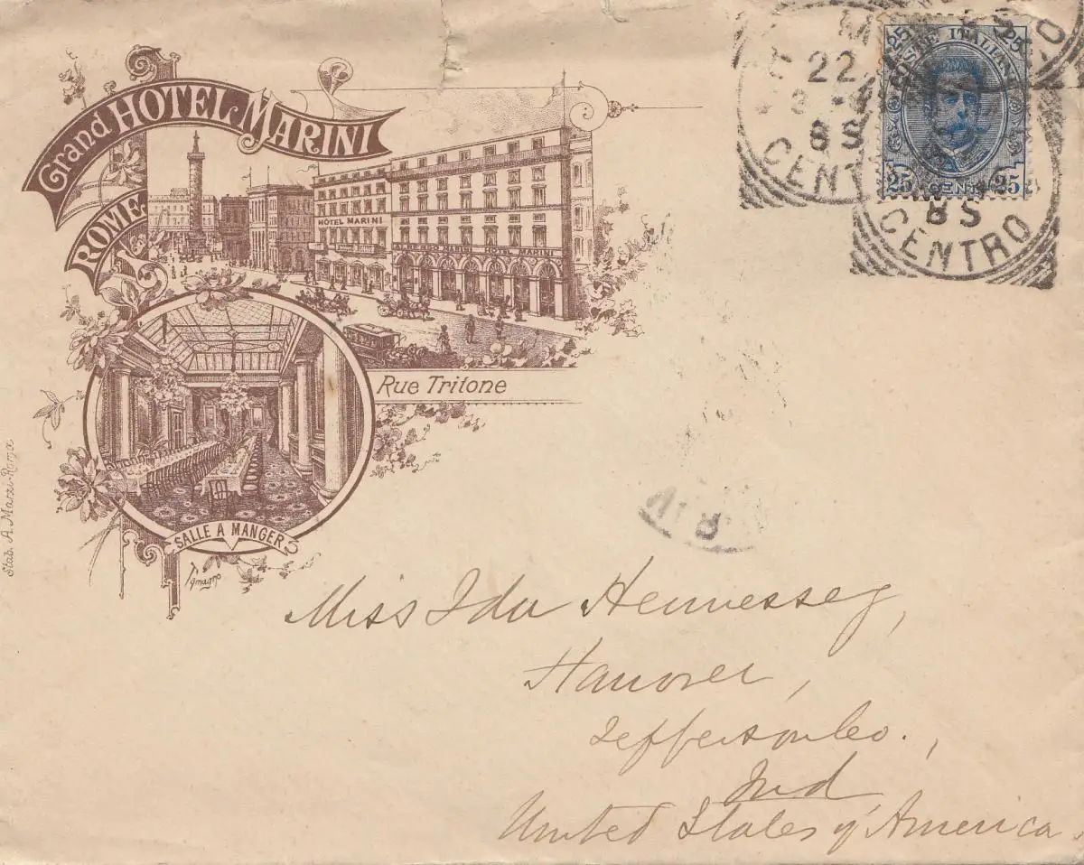 Italie: 1885: Rome-Grand Hotel vers les États-Unis