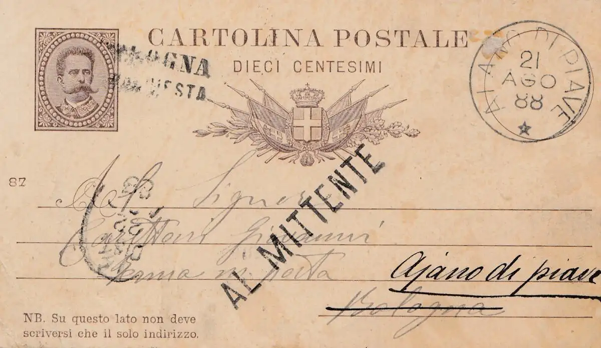Italie: 1888 Abandon complet Aiano Di Piave - après Bolgna