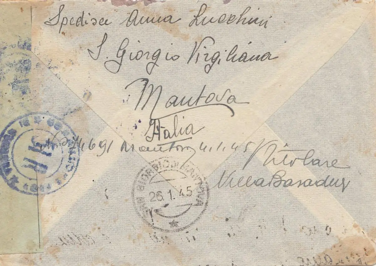 Italie: 1945: janvier: Mantova à camp de travail/Zensur: Interruption du trafic postal