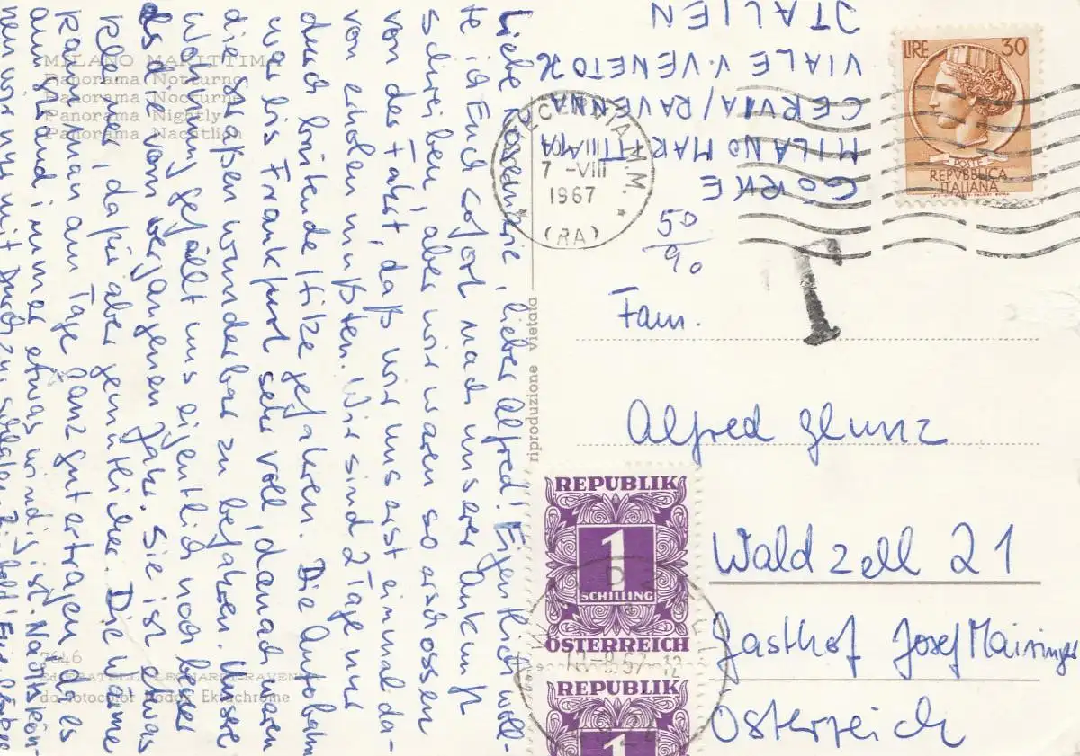 Italie: 1967: Carte de Milan vers l'Autriche, Taxe