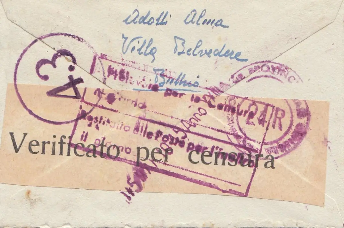 Italie: Lettre pour Udine - censure.
