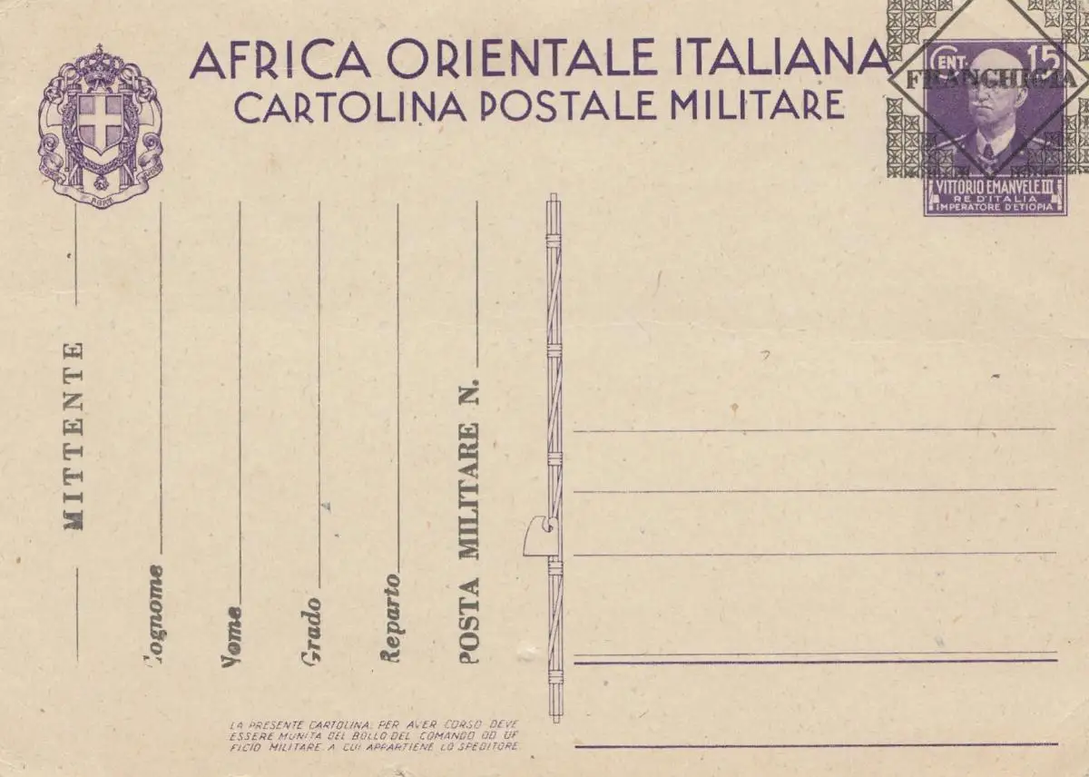 Italie: Affaire entière F22 Africa Orientale Italiana-Postale Militare