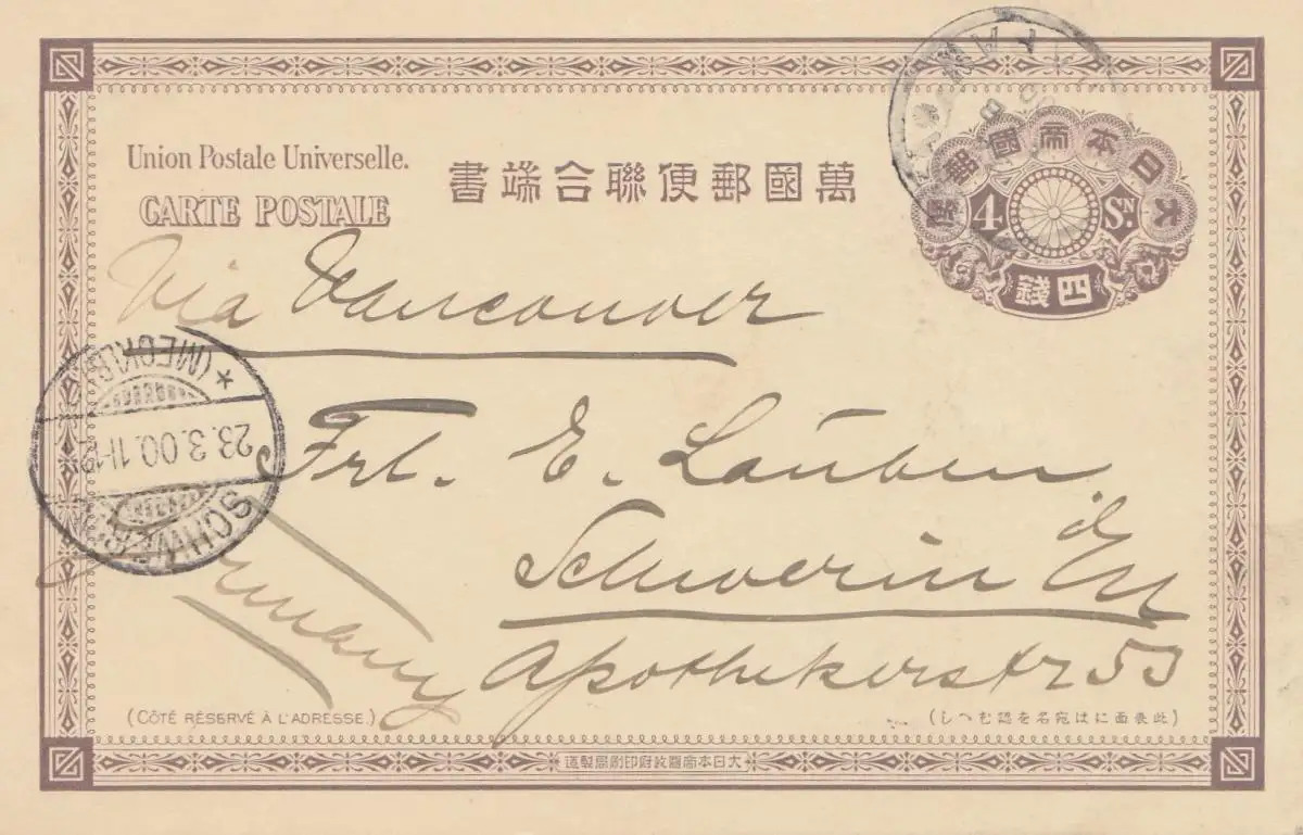 Japon 1900: post card to Schwerin