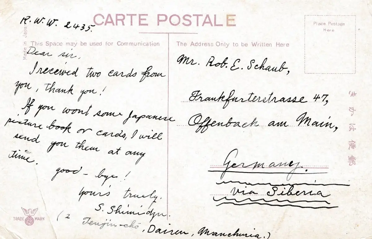 Japon 1930: post card Dairen, carpenter building a house to Offenbach