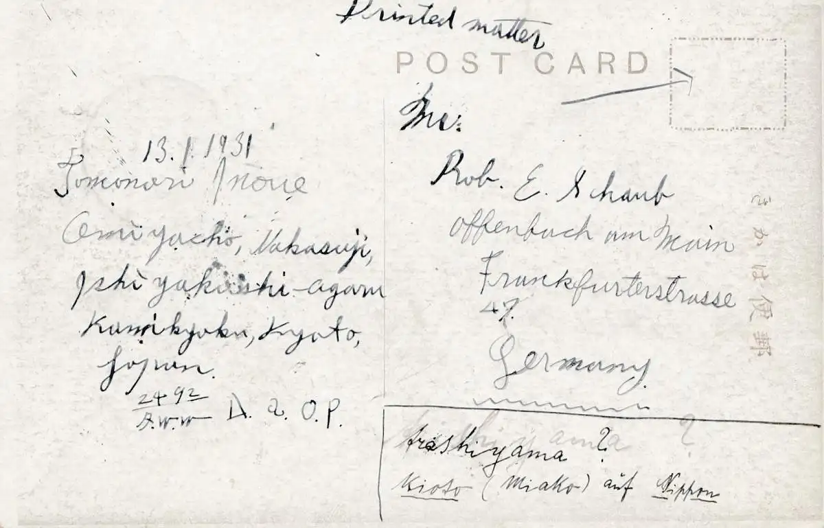 Japon 1931: Post card Arashiyama to Offenbach