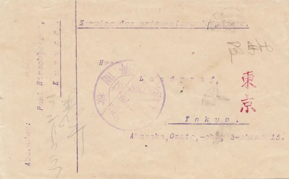 Japon letter Service des prisonneurs de guerre, Kuruno to Tokyo