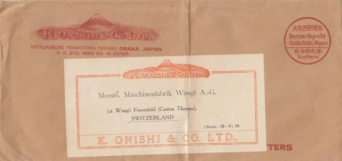 Japon unused cover Osaka Nishi to Frauenfeld/Switzerland
