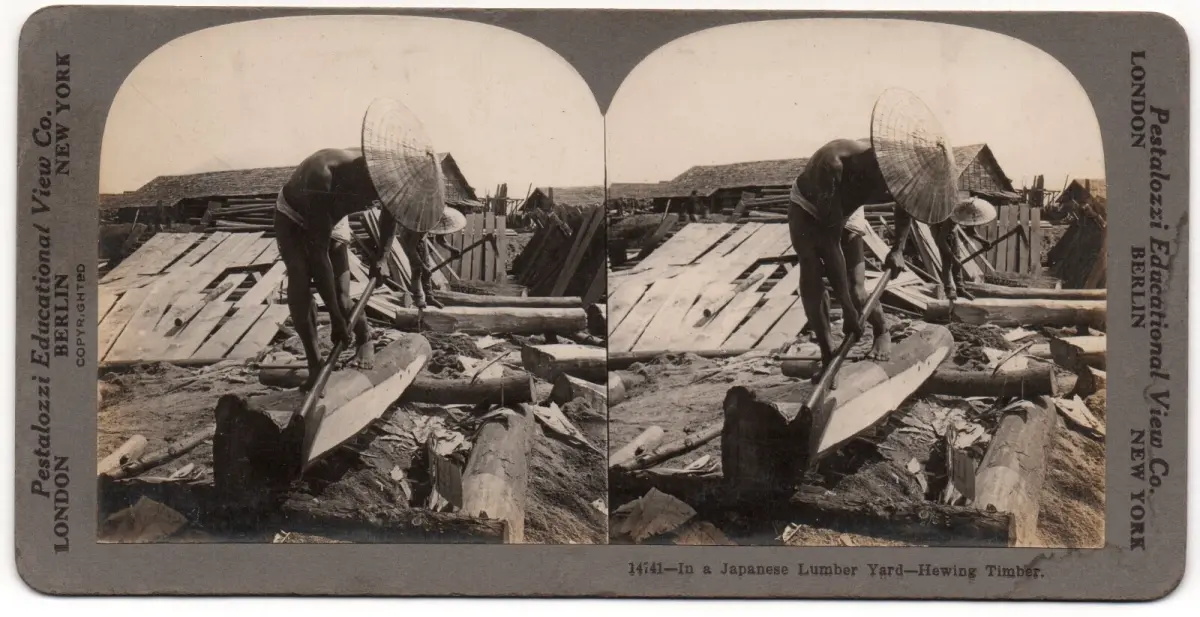 Japanese Sawmill – Stereoscopic Albumen Print Circa 1900
