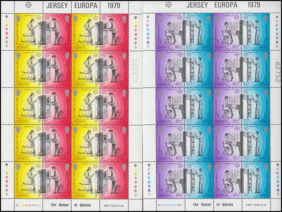 Jersey 192-195C Europe Post-Histoire - Contour C, jeu de petites feuilles **