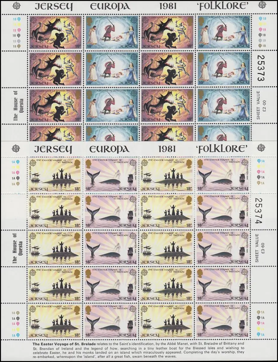Jersey 253-256 Europa Folklore, petit jeu d'arc **