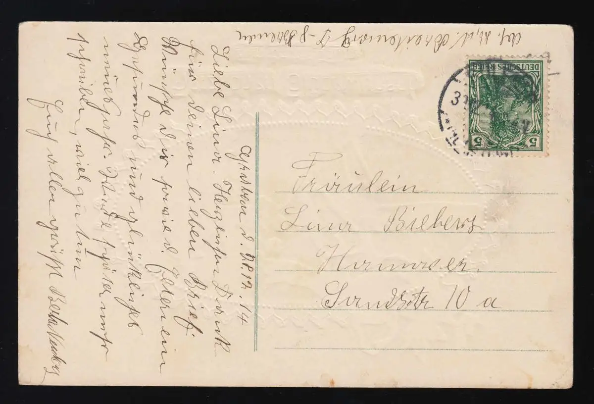 Jeune course neige branche de palmiers de show nouvelle année, couru 31.12.1914